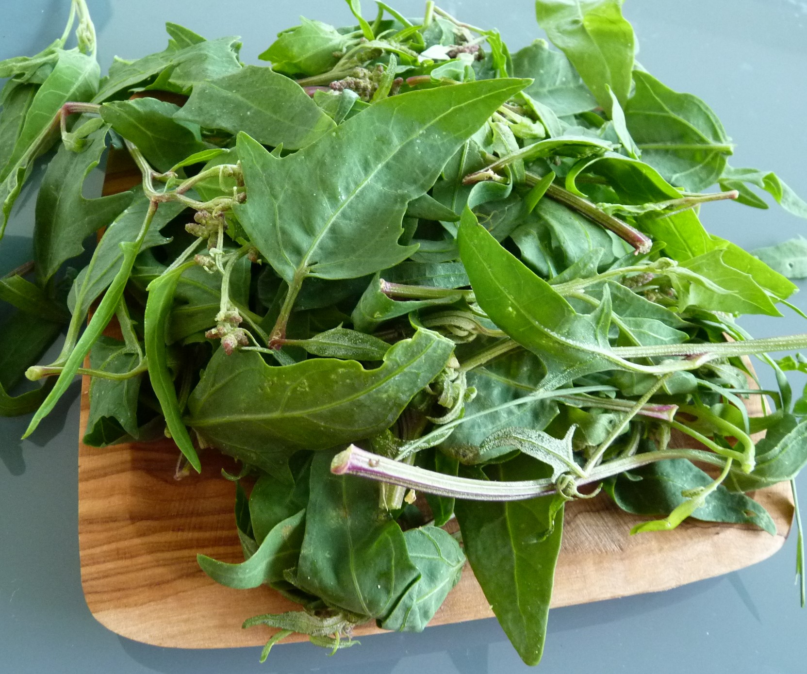 Seespinat schmeckt roh und kurz gedünstet in Olivenöl, Knoblauch und Pinienkernen ….leicht salzig, nussig der Geschmack.