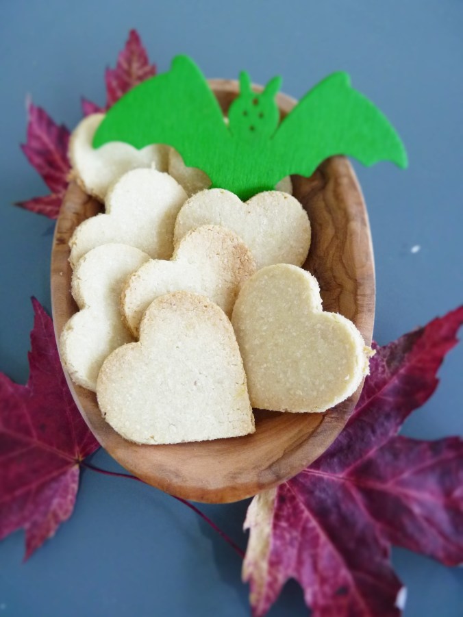 mussten heute sein. Es hat geregnet und meine Küche sah noch chaotisch aus, da kam es auf ein bisschen mehr Abwasch auch nicht drauf an. Diesmal aber keine rohen Kekse, trotzdem vegan, Gluten frei, Raffinierter Zucker frei, Lactose frei, Cholesterin frei und schmerzfrei, weil es nicht lange dauert, vielleicht insgesamt 30 Min. wenn die Ausstechformen nicht gleich auffindbar sind!