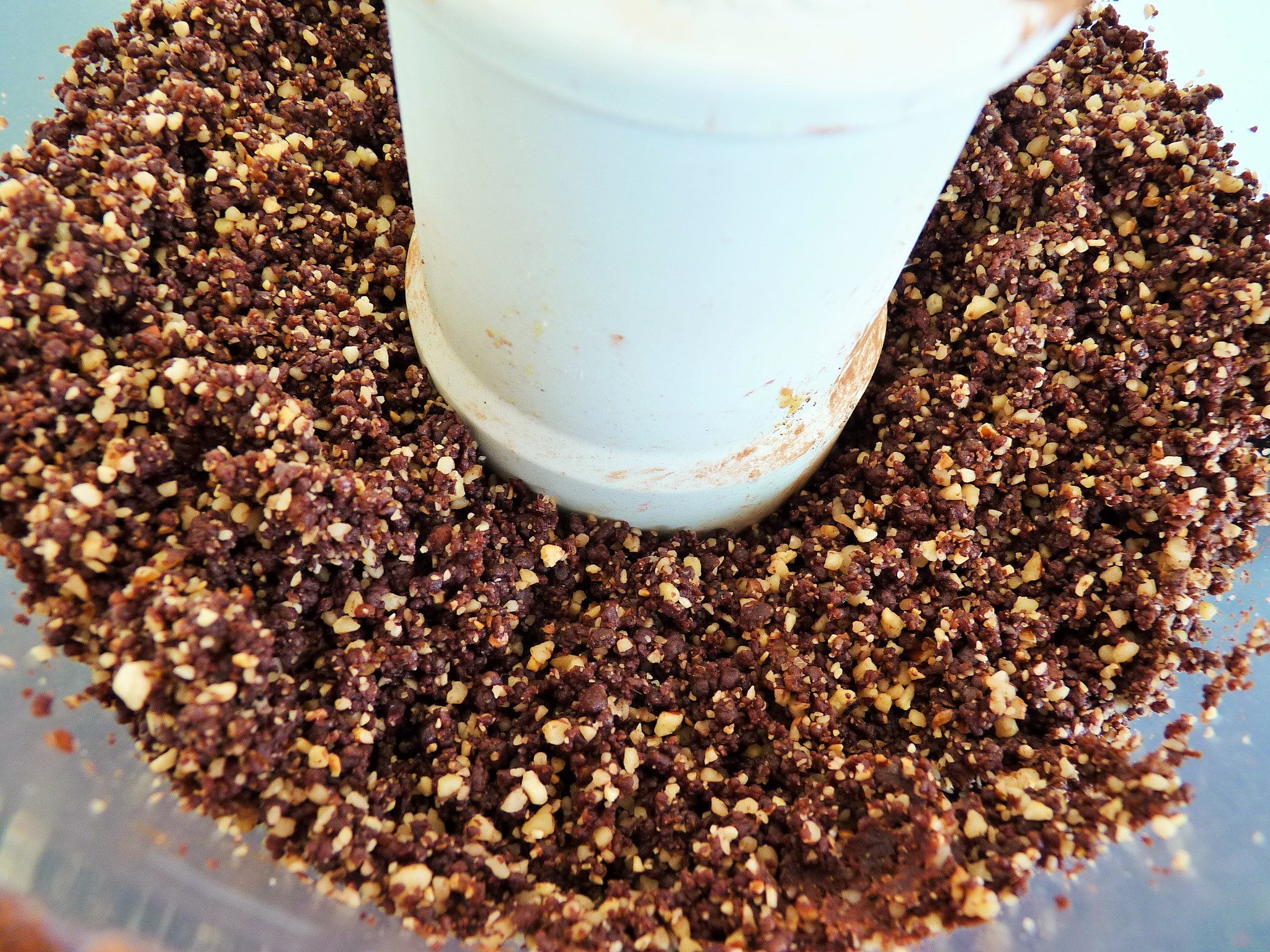 Für den Teig alle Zutaten in eine Küchenmaschine geben und kleinhäckseln bis zur krümeligen Konsistenz, wie Blumenerde 🙂