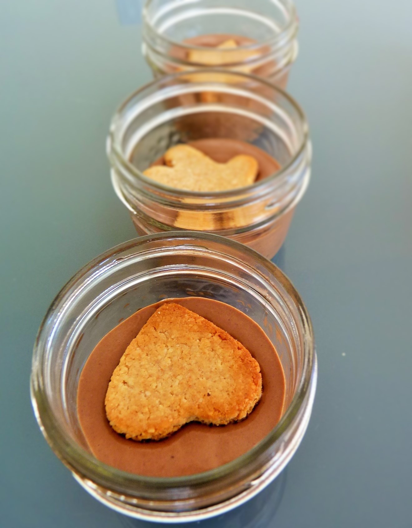 Belag für mousse au chocolat , das ist die doppelte Menge, aber ich habe die eine Hälfte für die Schnitten genommen und die andere in kleine Gläser abgefüllt als Nachtisch, mit Goji und Schokostückchen oder einfach mit Himbeeren. Da alles gut geeignet ist zum Einfrieren ist die doppelte Menge auch gut. Du kannst auch zwei Container machen und den Boden dünner. Alles eine Frage des Geschmacks.