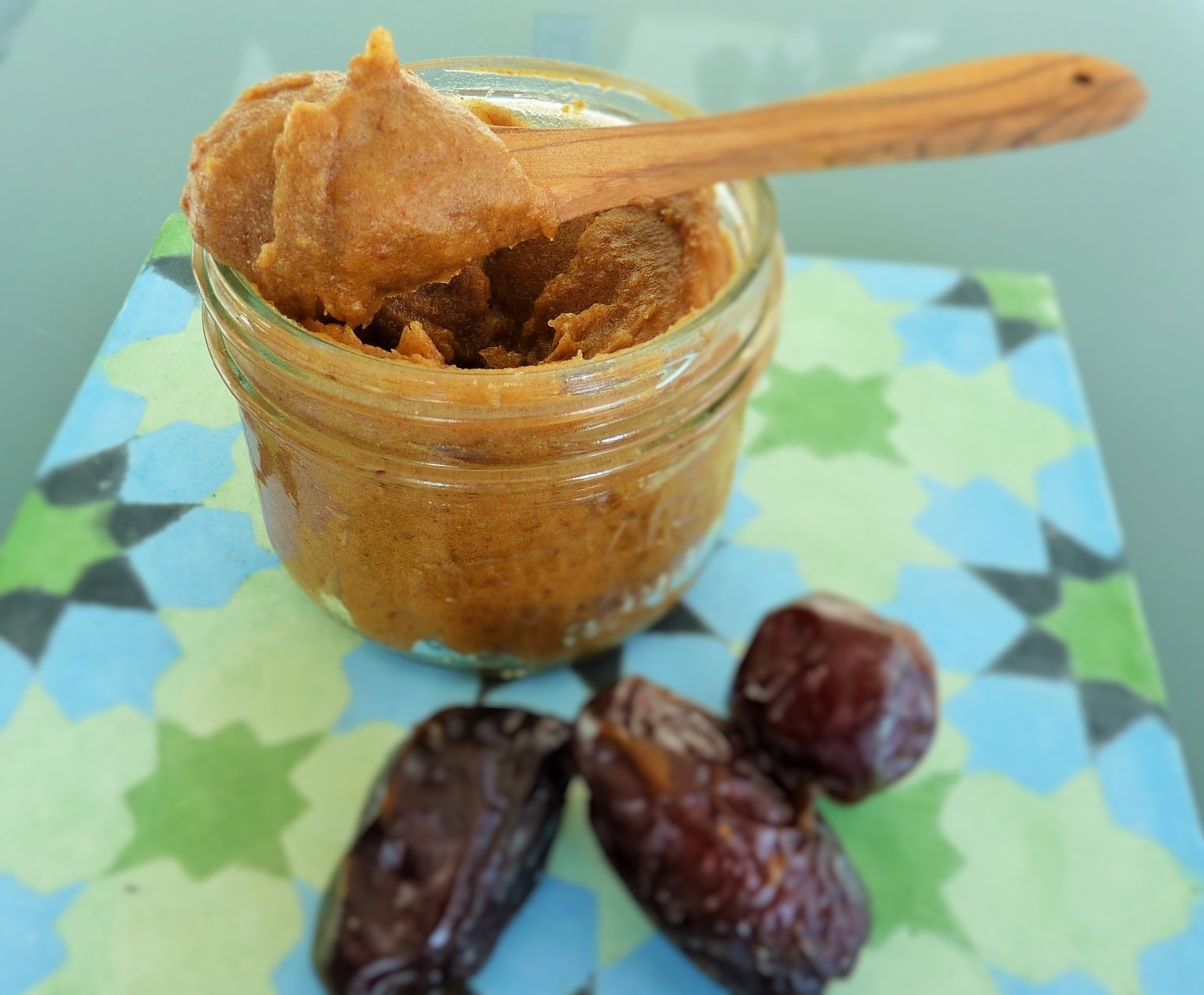 Wenn Du keinen Wert auf „roh“ legst, kannst Du auch ca. 200g entkernte, kleingeschnittene Datteln mit 120ml Wasser aufkochen und ca. 5 min. simmern lassen, pürrieren und heiß in ein Schraubglas füllen, dann hält es sich im Kühlschrank auch einige Wochen. Die Wasserzugabe richtet sich natürlich auch nach dem Trockengrad der Datteln.