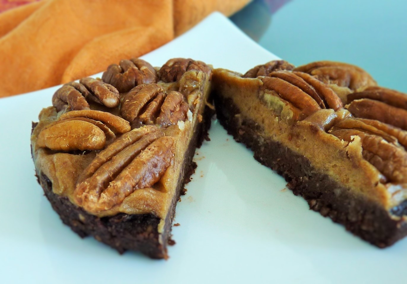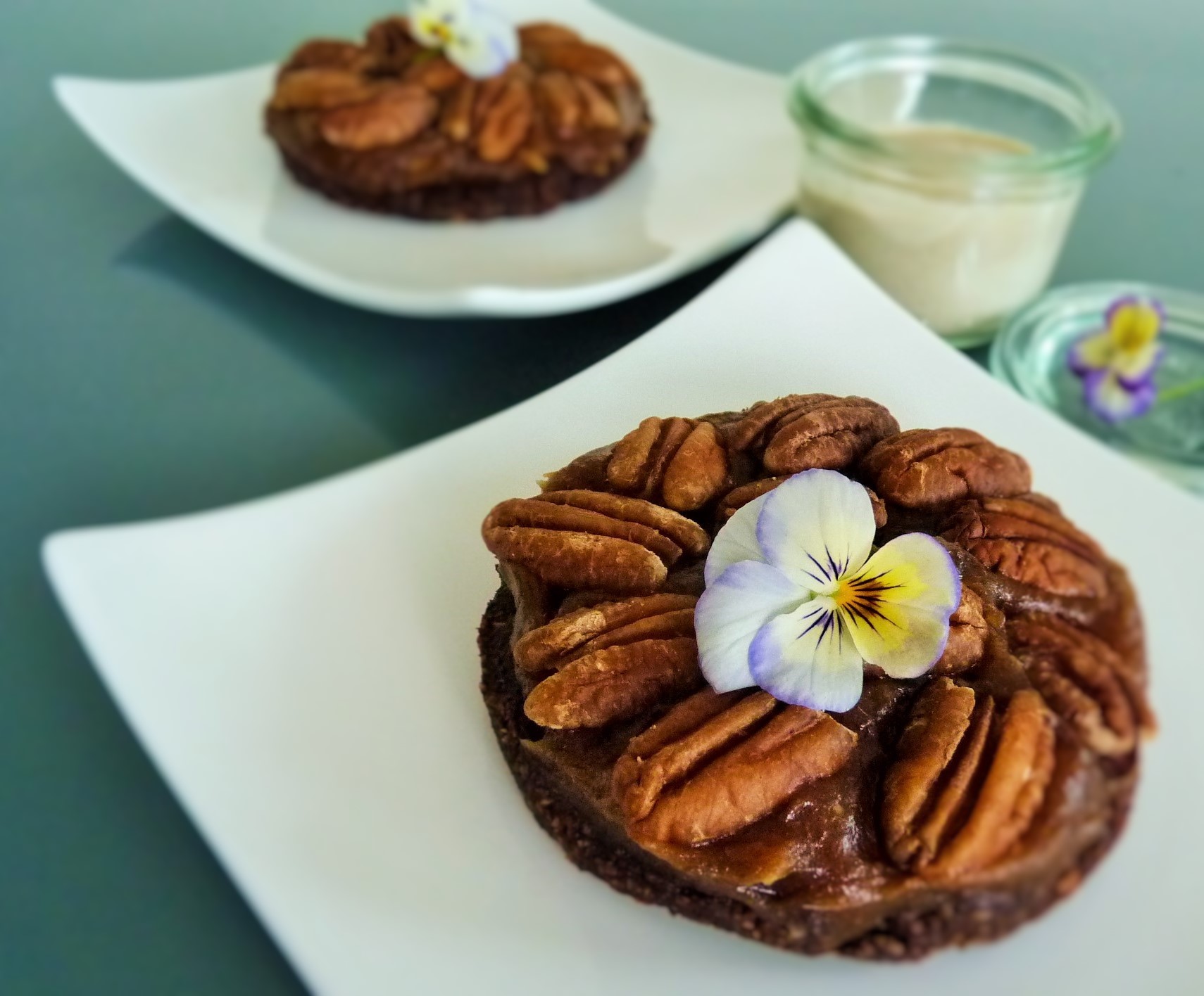 Es ist frustrierend, um DAS abzubauen musste ich etwas besonders kanadisches zubereiten. Also, was ist das? Ja, ein Pecan Pie, aber roh, vegan, kein Soja. Da wir aber nur 2 Leutchen sind lohnt sich ein Pie nicht und ich habe Mini Pie`s gemacht und friere sie ein.
