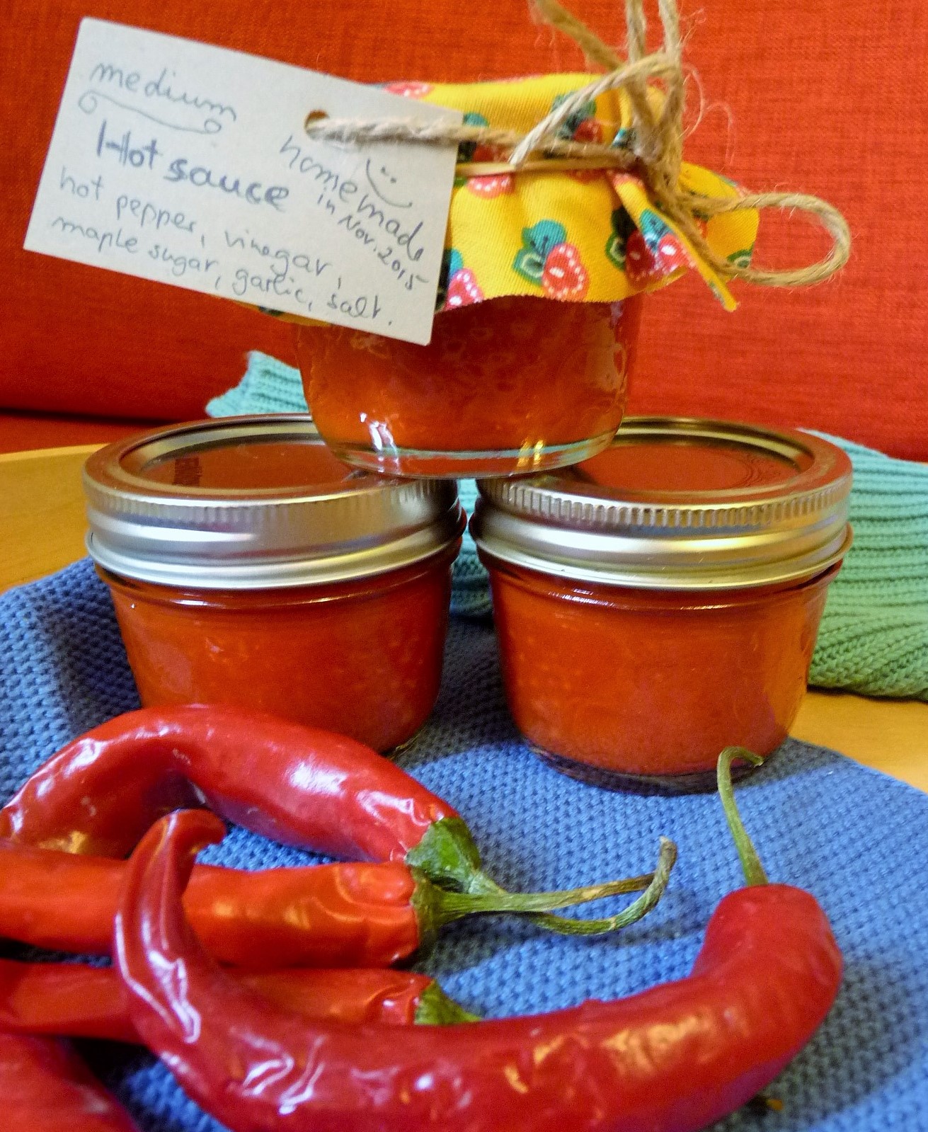 Jetzt der harte Teil des Ganzen: probieren ob noch mehr Essig oder Zucker dazu soll…….yes, am Besten ein paar Tropfen auf ein Stück Brot und in den Mund schieben. Es soll keine süß-scharfe Soße sein und auch nicht zu salzig. Aber das ist wie immer Geschmackssache. In kleine sterile Gläser füllen, zuschrauben und verschenken oder in den Vorratsschrank. Dieses Rezept ergibt ca. 4 kleine Gläser. Die Sauce kann zu gebratenem Gemüse, Brot, Tomatensauce, Reis oder Nudelgerichte gegessen werden. Macht eben alles etwas schärfer und jeder kann selbst bestimmen wie scharf!