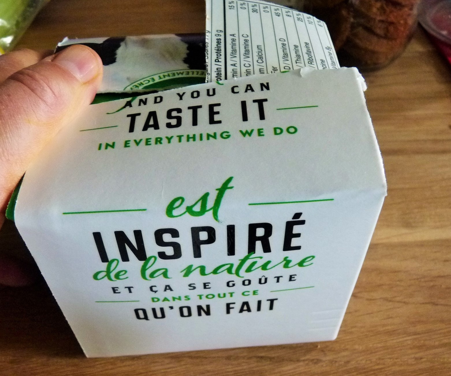 eine Verpackung wurde von mir recycled. Eine Milchbox und geschredderte alte Dokumente: