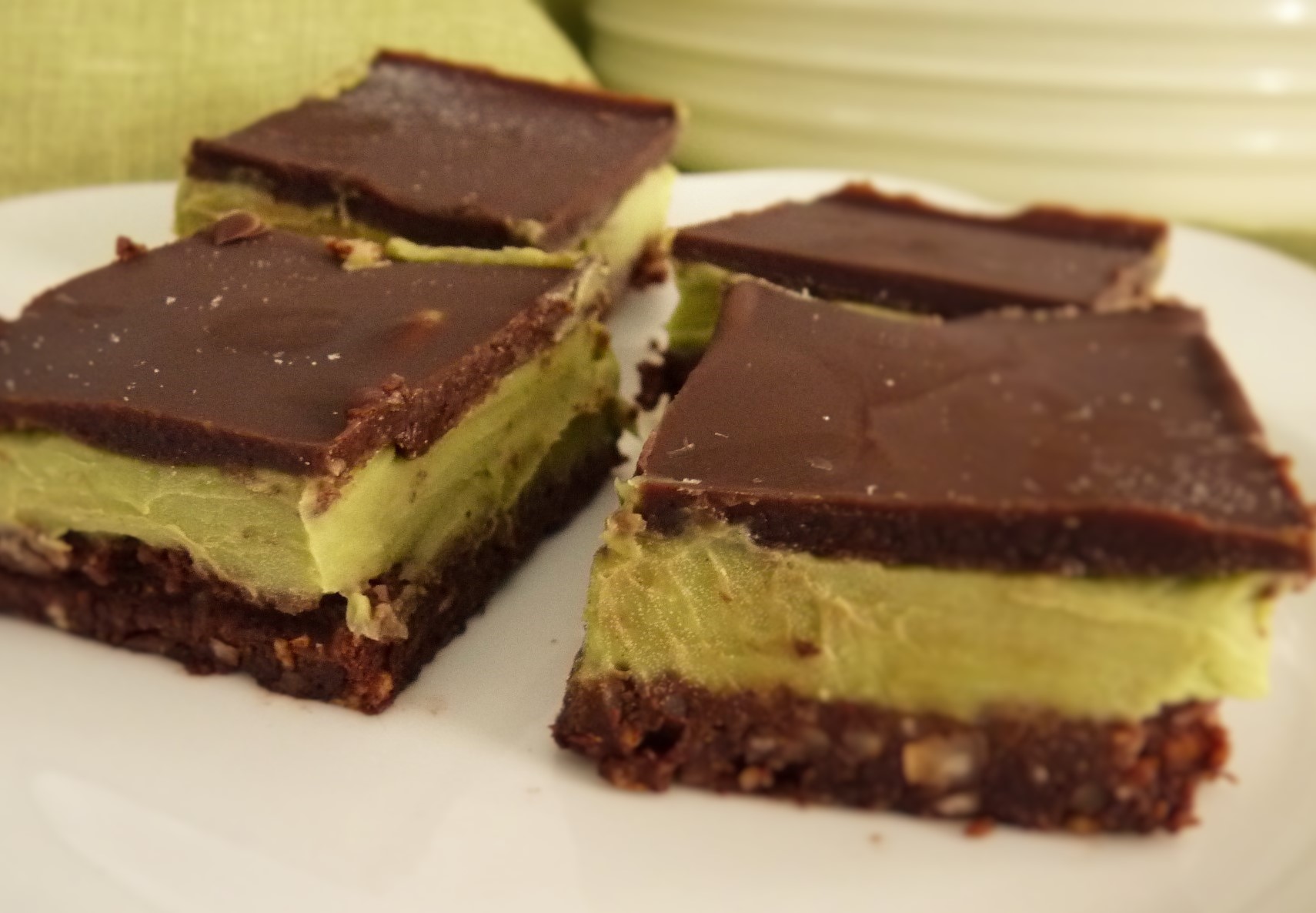 ich machs dann mal kurz: Meine Schoko-Lime Schnitte wurde zur After Eight Variation, weil ich Pfefferminzöl in die Avocadomasse gegeben habe. Das liegt nicht an meiner neuen Brille,  das hat mehr was mit Achtsamkeit zu tun.