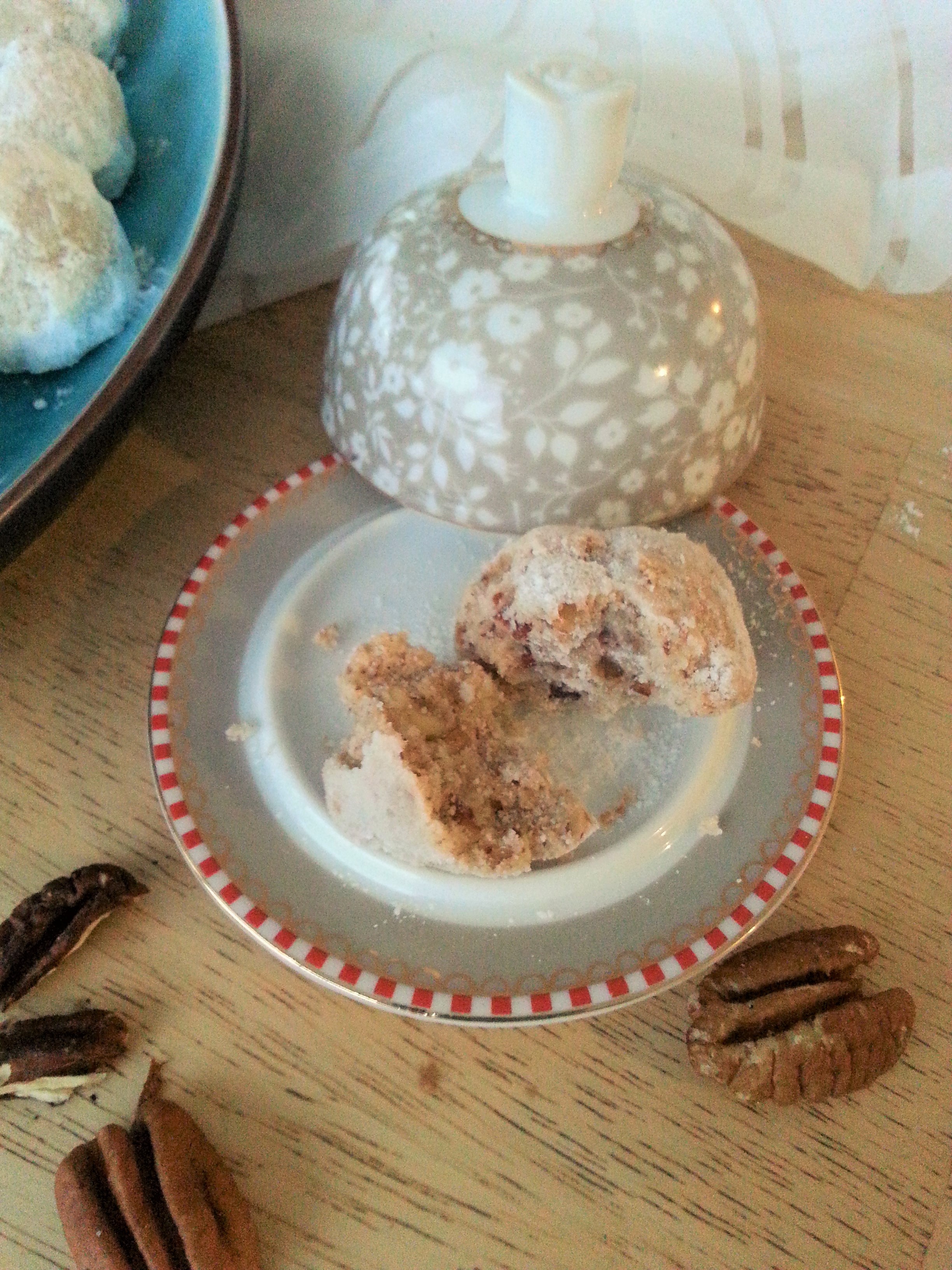 2017-01-12-16-13-00-2 ja das sind sie. Musste gerade für ein anderes Rezept die Daten berechnen und dachte mir „es kann nicht schaden, die pecan snowballs zu berechnen“. Das kann schon schaden, weil ich davon auch gern mal 2-3 zum Kaffee esse. Pro snowball sind das ca. 110kcal.  „I don’t give a shit “ kann ich in meinem Alter einfach mal sagen. Sind eine Menge Ballaststoffe drin und auch noch mit Xylit gesüßt. Am Wochenende wieder Skilaufen, geht!Werde sie fleißig weiteressen, weil sie einfach super gut schmecken und mich an Griechenland erinnern. Die Κουραμπιέδες oder Kourabiedes , diese butterig, sandigen Kekse mit Puderzucker ummantelt……yes, to die for!