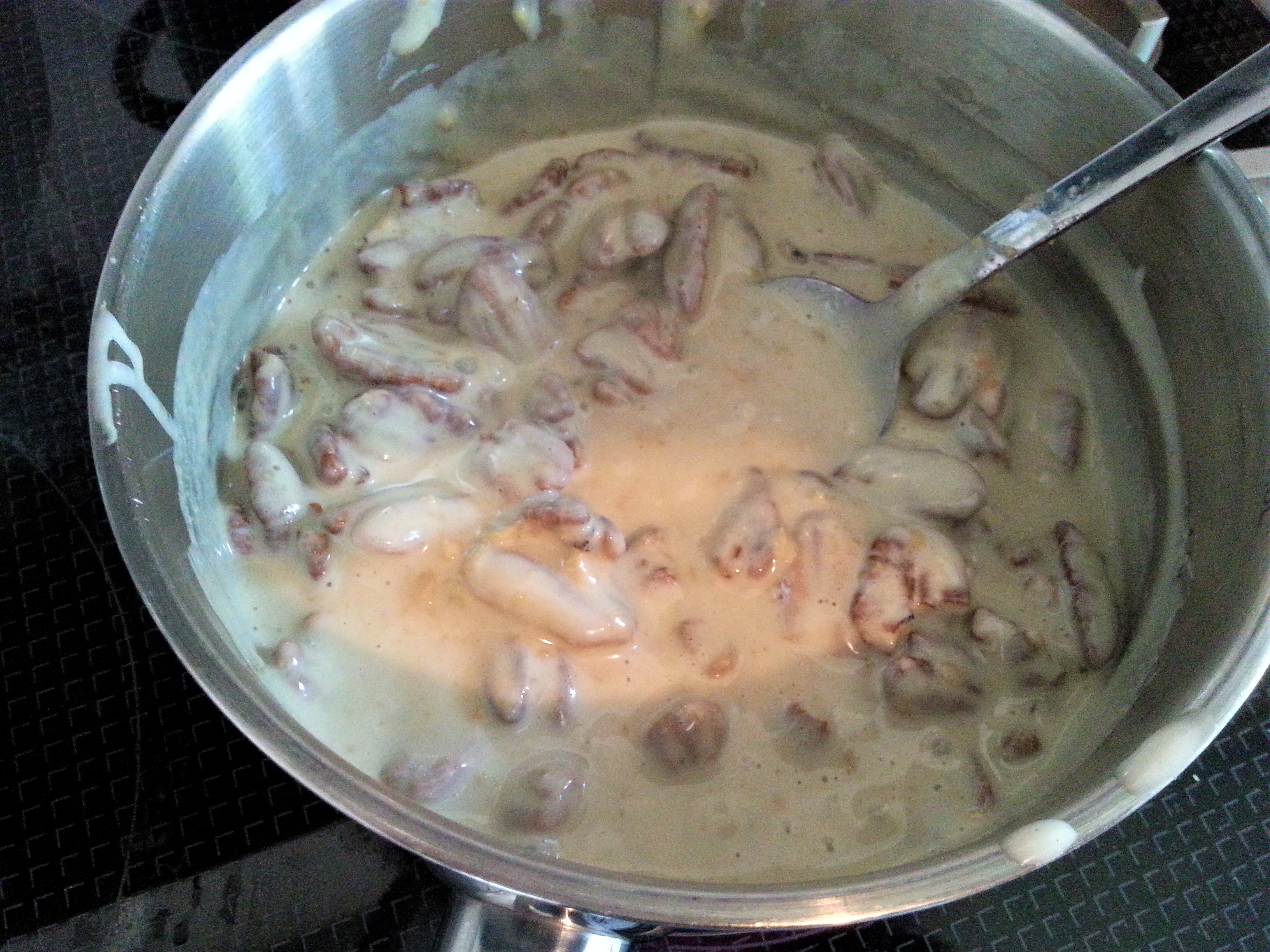und alles pürieren. Dann eine Tasse oder mehr Pecan (geht auch mit Walnuss) dazu und alles in einem Topf aufkochen und unter ständigem Rühren weiter köcheln. Es soll eine fest Breimasse entstehen. Auf you tube könnt ihr das Video von peaceful kitchen sehen. Sehr entspannend, also es lohnt sich.