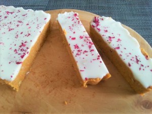 In der Gefriertruhe fest werden lassen und dann mit dem Guss bestreichen:
