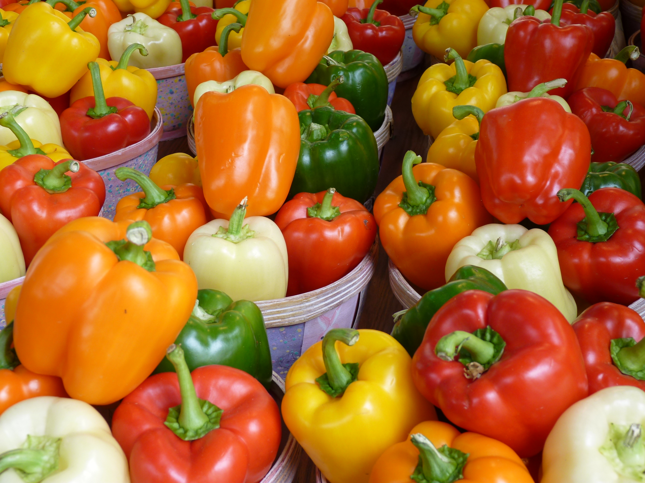 Da ist sie, die Paprika : Es gibt sie in unterschiedlichen Farben, nicht nur in gelb, grün und rot, man findet sie selbst in der Farbe Lila, wie eine Aubergine. Kalorienarm und gesund!