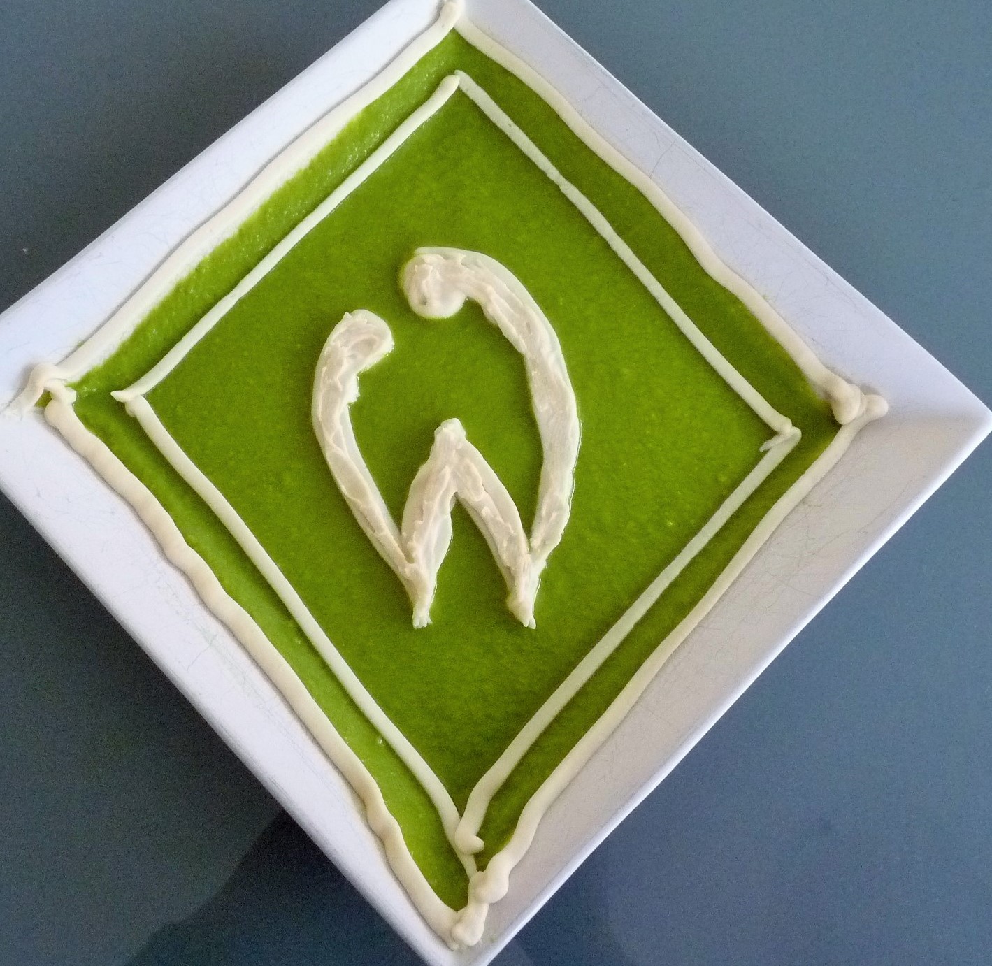 Bei Bayern (rot, weiß, blau) wäre das eine Tomatensuppe mit Bohnencreme und das Blau…….na gut da mixt man einfach ein bisschen HSV unter die Tomatensuppe, gel?