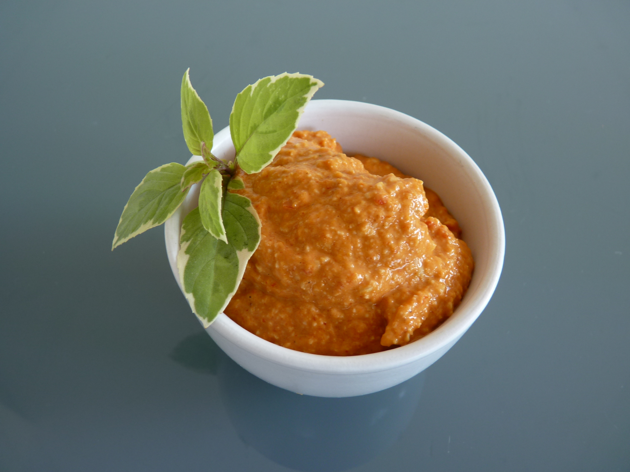 The grilled red pepper and other ingredients in a blender (I use my vitamix) and blend together until smooth and creamy.